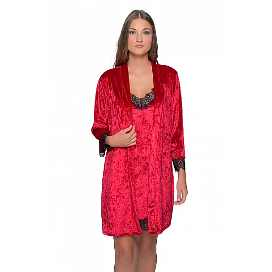 Σετ Γυναικεία Εσώρουχα Βελούδο Νυχτικό και Ρόμπα Ρουμπινί